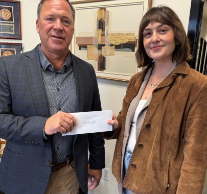 Brad Small, Founder of Solomon Fund and Cars for Charity presents a check to Kim Keene of The Pelican Fund (left) and Chris Nazareth of Beverly Bootstraps (right) from the October 23, 2022 event proceeds.